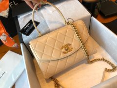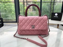 香奈兒官網 Coco Handle豆沙色 顆粒鏈條口蓋包