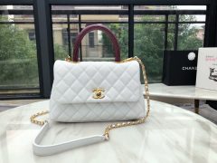 香奈儿口盖包配真蜥蜴皮手柄 Chanel coco handle 小号白色