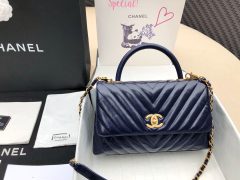 香奈儿宝蓝色中号 油腊皮口盖包配手柄 手堤包coco handle bag 单肩包