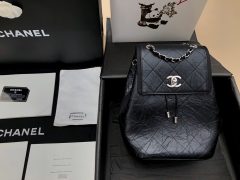 香奈儿休闲时尚双肩背包 采用意大利复古抓花 黑色小牛皮、美感十足