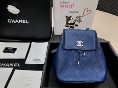 香奈儿双肩背包价格 采用意大利复古抓花 蓝色小牛皮 美感十足
