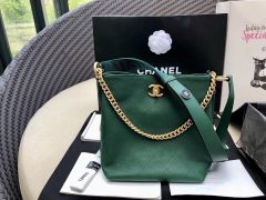 香奈儿Chanel 嬉皮包 墨绿色小牛皮、罗缎与金色金属