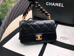 香奈儿口盖包配蜥蜴皮手柄 手堤包Chanel Coco Handle Bag 黑色油腊小牛皮中号