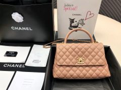 Chanel香奈儿口盖包配手柄 coco handle bag 中号 焦糖色鱼子酱牛皮与金色金属