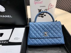 香奈儿口盖包配手柄 coco handle bag 中号 浅蓝色 鱼子酱牛皮与金色金属