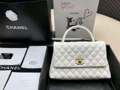 香奈儿口盖包配手柄 coco handle bag 中号 奶白色 鱼子酱牛皮与金色金属