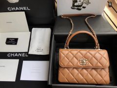 小香Trendy bag CC菱格形焦糖色羊皮手提口盖包