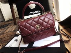 小香Trendy bag CC菱格形波尔多酒红羊皮手提口盖包