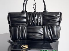 寧波bottegaveneta專櫃 Bottega Veneta 新款褶皺Tote黑色購物袋