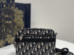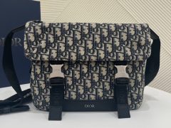 迪奧oblique系列 迪奧專櫃北京 Oblique 藍色老花拉鏈單肩斜挎包男款