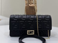 芬迪女包價格及圖片新款 卡塔爾 Qatar Doha Fendi芬迪 Baguette黑色鏈條羊皮单肩包