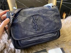 圣罗兰包包官网 YSL Baby Niki 藏蓝色褶皱绗缝真皮链条包