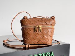 BV中國官網 Bottega Veneta化妝包 23新款編織迷你化妝包棕色 單肩斜挎女包