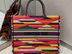 迪奥 Book Tote彩色条纹大号几何拼色购物袋
