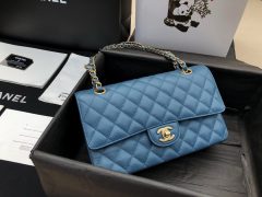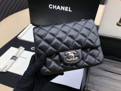 香奈儿口盖包Classic Flap Bag 海军蓝色鱼子酱 GR小牛皮菱格链条包