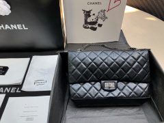 Chane.小香经典款中号Large 2.55 handbag口盖包复古小牛皮银扣 黑与酒红