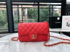 香奈儿chanel 19春夏新色 CF mini橙红色 羊皮菱格链条经典口盖包