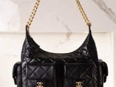 巴林 Bahrain 香奈兒hobo官網價格 23k 19hobo 小號黑色褶皺牛皮