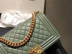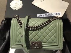 Boy中号抹茶绿菱格款,小羊皮做旧五金口盖包25cm