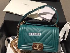 小香新墨绿色Boy迷你小细球大V单肩斜挎口盖包 牛皮亮金