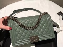Boy中号希腊绿菱格款,原厂牛皮鱼子酱球纹银色亮金口盖包