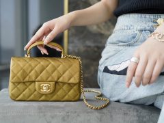 上海 香奈儿chanel 新款手柄CF MINI金色 颗粒压花芝麻纹小牛皮