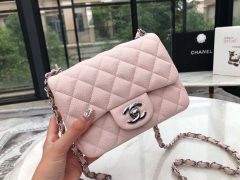 香奈兒chanel CF 方胖子粉色羊皮銀扣 經典鏈條口蓋包17cm