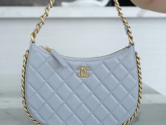 香奈兒hobo包價格 chanel香港觀塘區油塘 23b手工坊雙鏈條腋下包中號霧霾藍