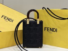 fendi迪拜官網 fendi 全皮壓花 黑色mini Tote包 女士手提包 單肩斜挎包