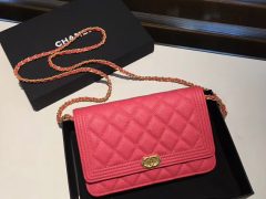 Leboy款经典Woc链条包,原单品质,桃红色鱼子酱球纹皮复古银磨砂金扣