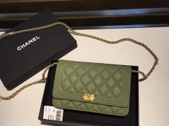 Leboy款,经典Woc链条包,橄榄绿鱼子酱球纹皮 复古银磨砂金扣