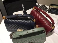 Boy中号小球纹大V格,原厂小牛皮柜台色金扣单肩斜挎包