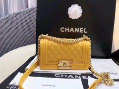 香奈儿口盖包 MINI Leboy bag 柠檬黄色 INCAS 胎牛皮鱼子酱细球纹 复古沙金色五金金属