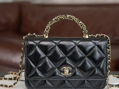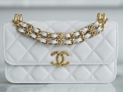 香奈兒手機包價格及圖片 22k新款鏈條mini woc手機包意大利荔枝紋小牛皮