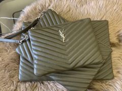 YSL女包 圣罗兰包包中国官网 YSL手拿包 MONOGRAM 绿色小牛皮小手包