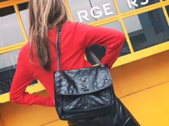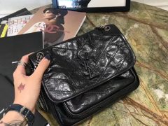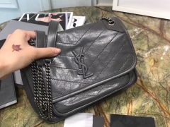 圣罗兰邮差包YSL NIKI中号黑色做旧褶皱雾绗缝皮链条包 4988940EN