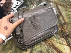 圣罗兰YSL BABY NIKI 灰色女包 褶皱绗缝真皮链条邮差包