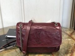圣罗兰包包 YSL NIKI 迷你酒红色小牛皮 褶皱绗缝真皮链条包
