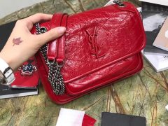 圣罗兰包包YSL NIKI 迷你艳红色褶皱绗缝真皮链条包